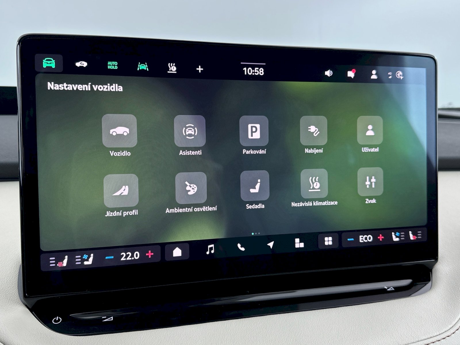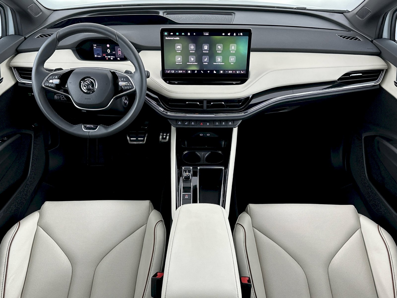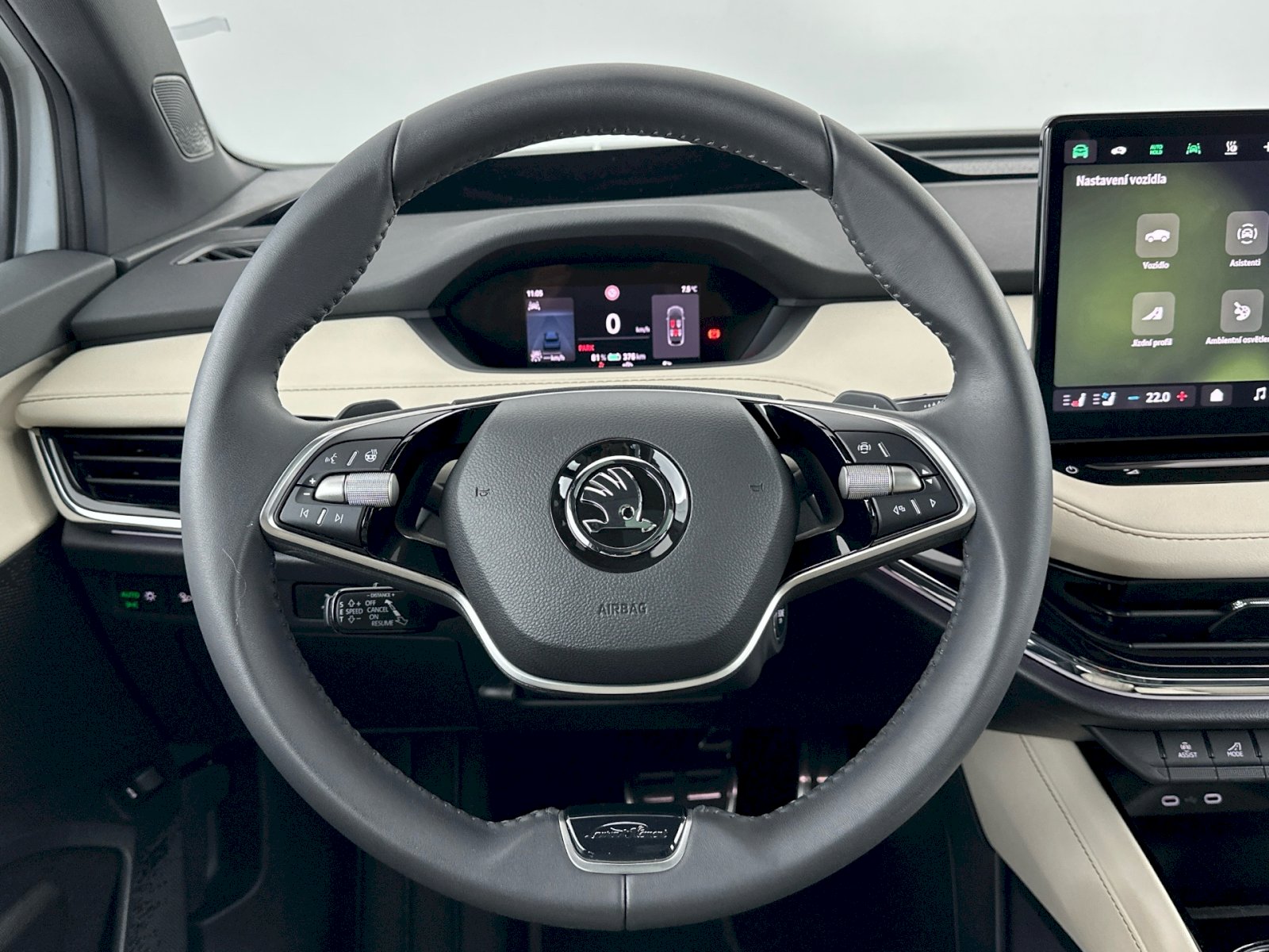 DODATEČNÁ VÝBAVA: Kola z lehké slitiny "AQUARIUS" 21", Tepelné čerpadlo, Tažné zařízení mechanicky sklopné a el. aktivovatelné, Panoramatická posuvná střecha, Matrix-Beam, Climatronic (3zónový) s ovládací jednotkou klimatizace vzadu, Bezklíčový systém zamykání a startování "Keyless Advanced" s bezpeč. pojistkou, Navigační systém + SmartLink + Hlasové ovládání, Head-Up displej, Komfortní telefonování s bezdrátovým nabíjením, Sound systém Canton, AREA VIEW 360°, Zásuvka 230V, Virtuální pedál, El. sklopná, vyhřívaná vnější zrcátka, El. nastavení předních sedadel, s pamětí, Ventilace a masáž sedadel vpředu, Vyhřívané čelní sklo, Nabíjecí kabel Mode 3. PRODLOUŽENÁ ZÁRUKA 5 LET / 100 000 km.