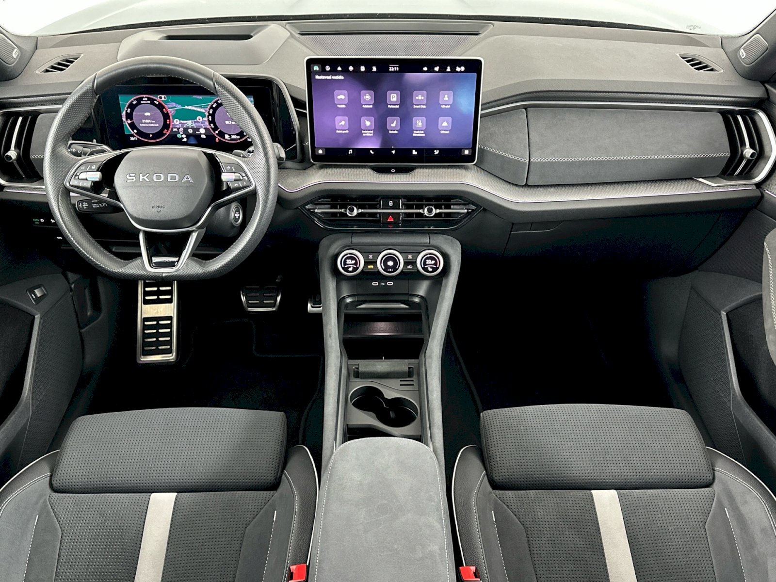 DODATEČNÁ VÝBAVA: Litá kola TRISULI 19", Rezervní kolo, Tažné zařízení mechanicky sklopné a el. aktivovatelné, Vícenásobný Matrix-Beam, Climatronic (3zónový) s ovládací jednotkou klimatizace vzadu, Nezávislé topení s dálkovým ovládáním, Bezklíčový systém zamykání a startování "Keyless Advanced", Navigační systém + Hlasové ovládání + App-Connect, Head-Up displej, Komfortní telefonování s bezdrátovým nabíjením, Sound systém, Virtuální pedál, El. sklopná, vyhřívaná vnější zrcátka, El. nastavení předních sedadel, s pamětí, Komfort paket Plus, LED paket, Simply Clever Family Paket. PRODLOUŽENÁ ZÁRUKA 5 LET / 100 000 km.